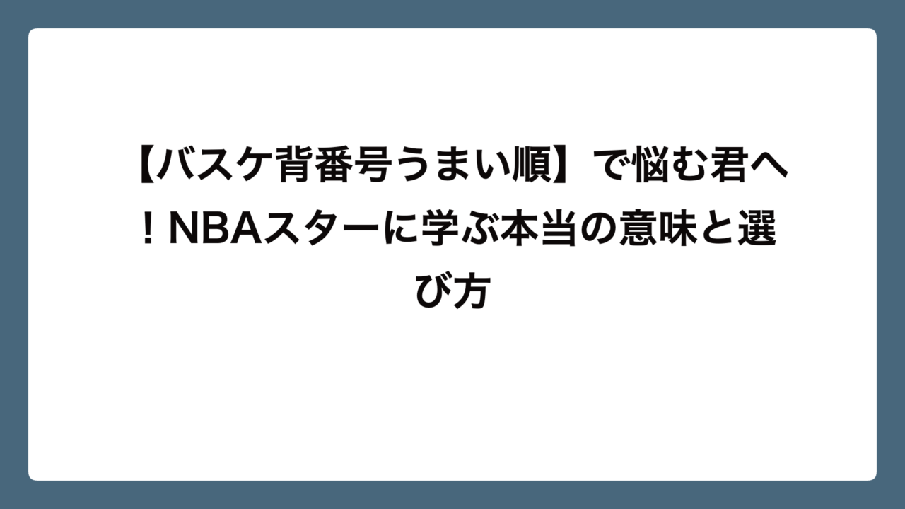 ここまで、「バスケ 背番号 うまい順」というテーマで、ポジション別に様々な番号とその意味について話してきた。