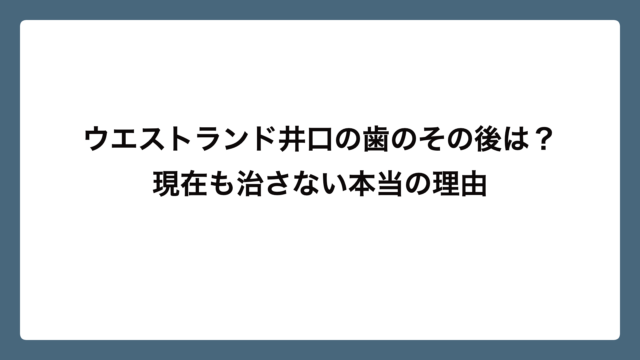 エンタメ ウエストランド井口の歯のその後は?現在も治さない本当の理由 2025年12月2日 Meister start-nerve 「ウエストランドの井口さんって、結局あの歯を治したのかな?」 ふとテレビを見ていて、そんな疑問を持ったことはありませんか? あ …