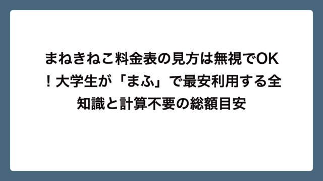 日常 まねきねこ料金表の見方は無視でOK!大学生が「まふ」で最安利用する全知識と計算不要の総額目安 2025年11月20日 Meister start-nerve 公式サイトの料金表、めちゃくちゃ分かりにくいですよね?元店員の僕でも、パッと見で計算するのは無理です(笑)。 「30分10円って書い …
