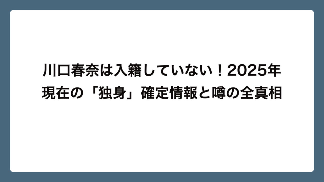 ご安心ください。取材歴15年の私が断言しますが、2025年11月現在、川口春奈さんは独身であり、誰とも入籍していません。