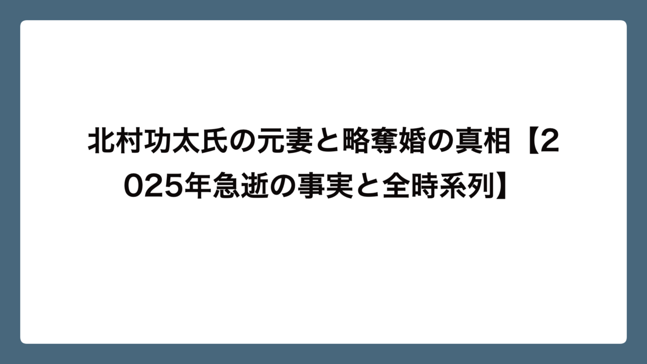 本記事では、北村功太氏の「元妻」「略奪婚疑惑」「急逝」について、確かな事実のみを繋ぎ合わせて解説してきました。
